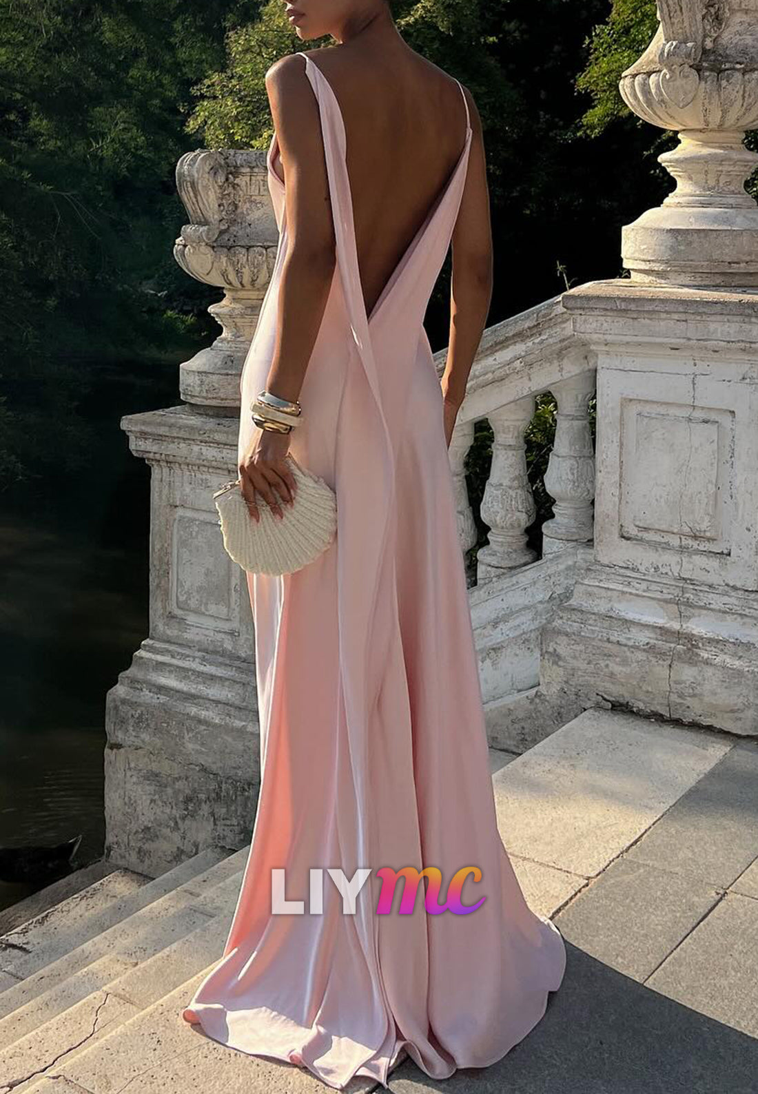 Scoop Spaghetti Straps Backless Sleek Sheath Formal Dress