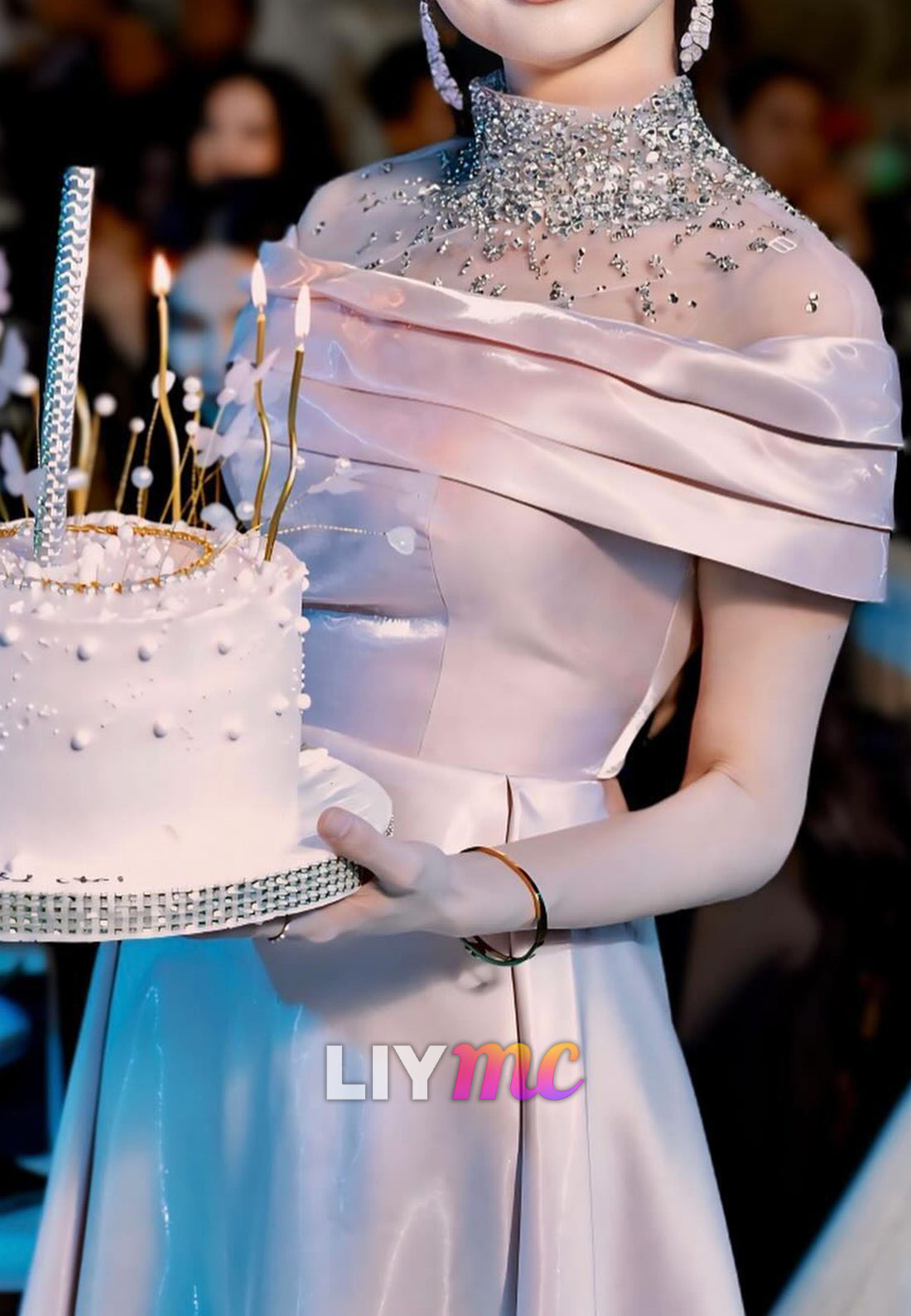 Elevate your formal look with this polished prom dress that combines modern minimalism with refined details. The high neckline provides elegant coverage while short sleeves add a contemporary touch, creating a balanced silhouette that feels both current and timeless. Intricate beading adorns the bodice, introducing just the right amount of glamour and sparkle to catch the eye. The sleek A-line cut skims the body gracefully before flowing outward, flattering your figure while allowing comfortable movement. Perfect for those who prefer understated sophistication paired with subtle embellishment for their most memorable occasions.