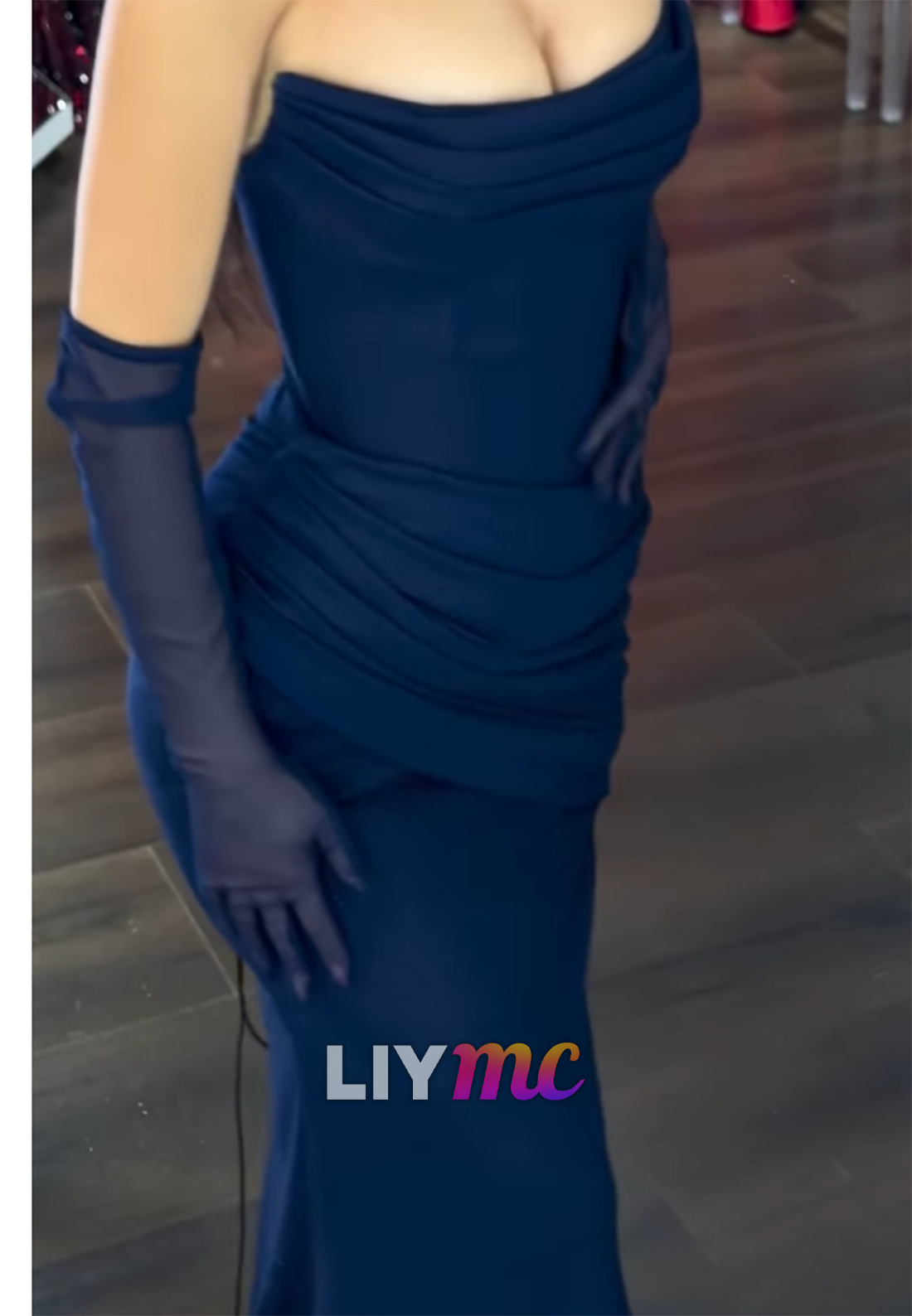 Off-Shoulder Strapless Pleated Fitted Mermaid Prom Dress x 1;