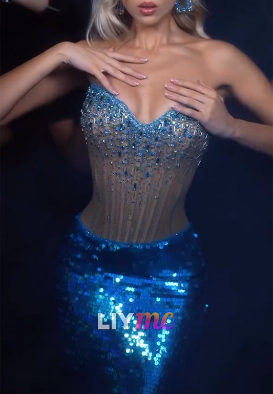 Sweetheart Beaded Sequins Mermaid Sparkly Prom Dress