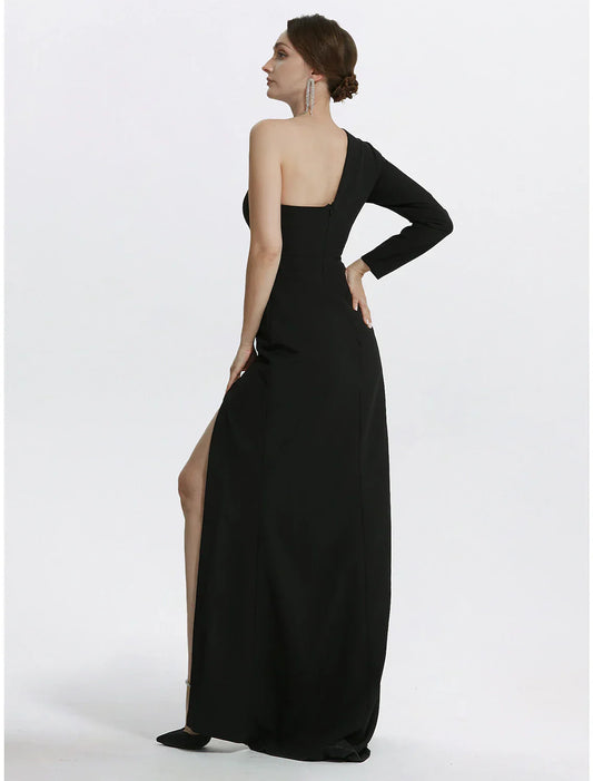 Mermaid Evening Gown Elegant Black Dress Wedding Guest Prom Floor Length Long Sleeve One Shoulder Stretch Fabric with Slit