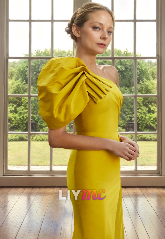 M1328 - Asymmetrical Puff Sleeves Sleek Satin Mermaid Mother of Bride Dress Cocktail Dress