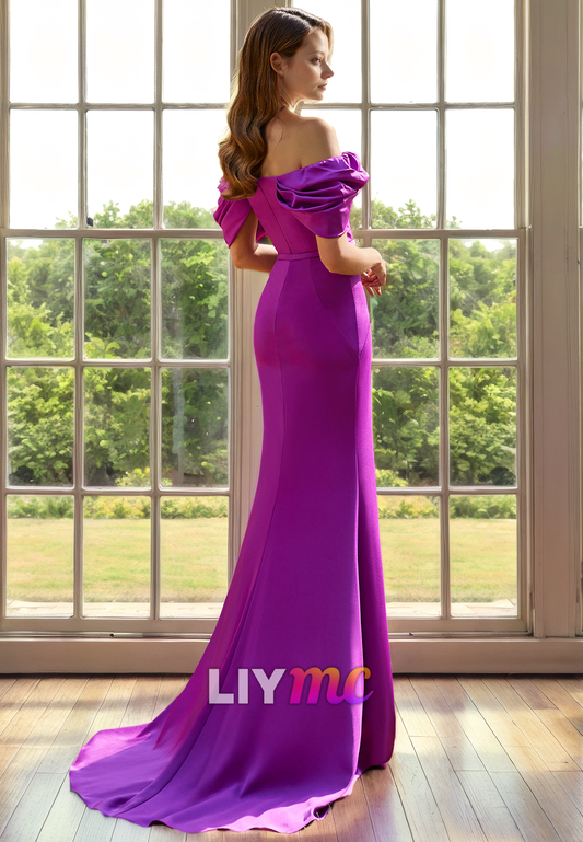 Off-Shoulder Strapless Ruffled Sleek Satin Sheath Mother of Bride Dress