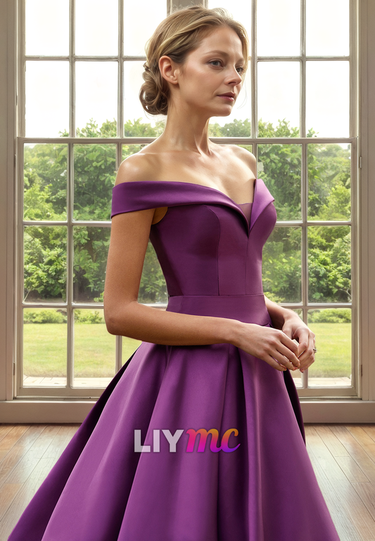 Off-Shoulder Sleeveless Sleek Satin A-Line Mother of Bride Dress Cocktail Dress