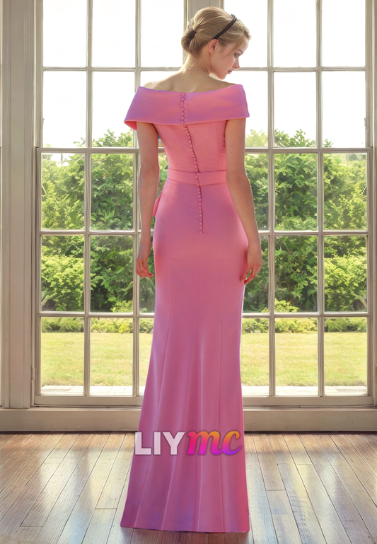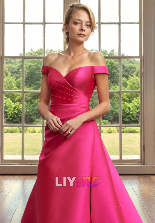 Off-Shoulder Sleeveless Ruched Floor Length Mother of Bride Dress Cocktail Dress