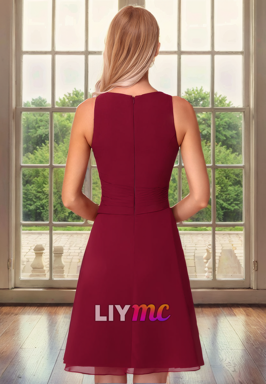 Scoop Sleeve;less Chiffon Pleated A-Line Mother of Bride Dress Cocktail Dress
