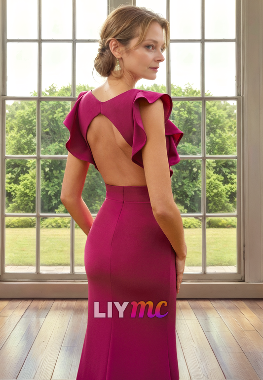 M1318 - V-Neck Sleeveless Ruffled Mermaid Sleek Satin Mother of Bride Dress Cocktail Dress