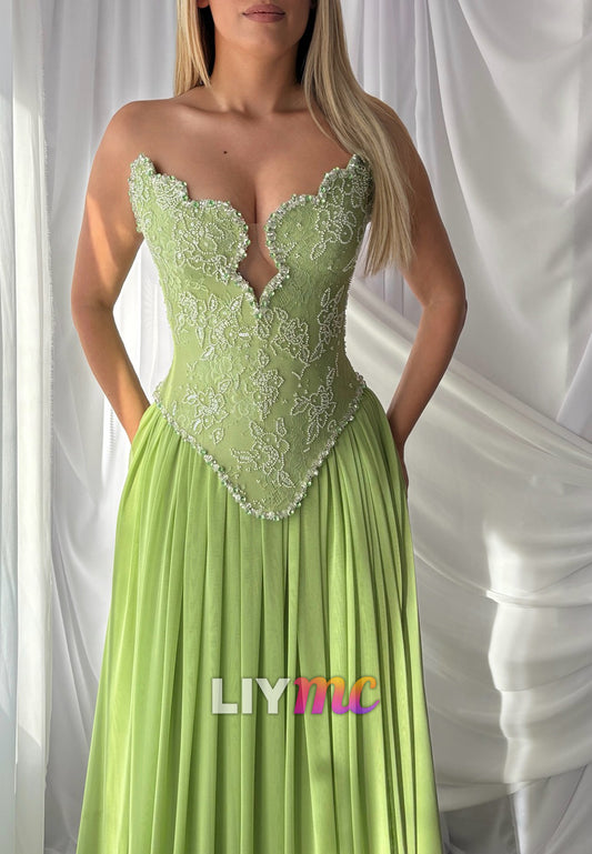 Sweetheart Elegant Split Beaded Strapless Prom Dress