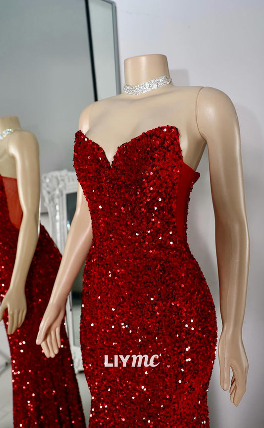 LP1959 - V-Neck Sleeveless Lace-Up Sequins Mermaid Sparkly Prom Dress