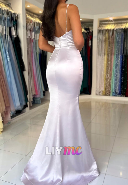 V-Neck Spaghetti Straps Open Back Sleek Mermaid Evening Dress