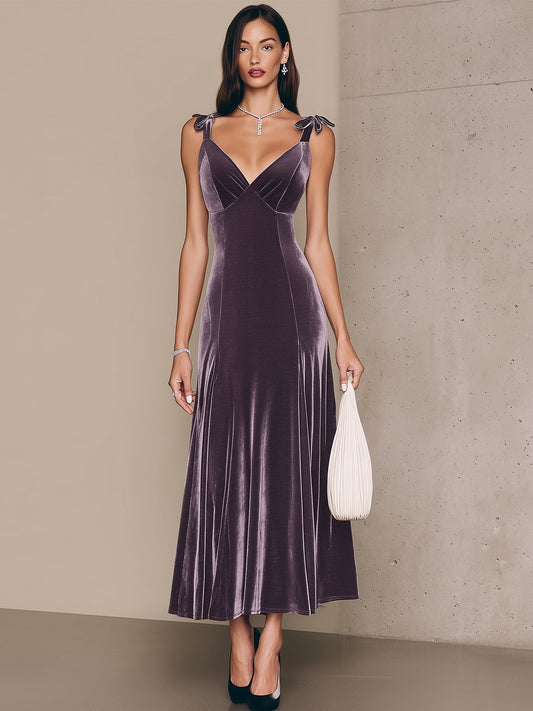 Burgundy Velvet Deep V-Neck Midi Dress: Elegant Statement For Formal Occasions